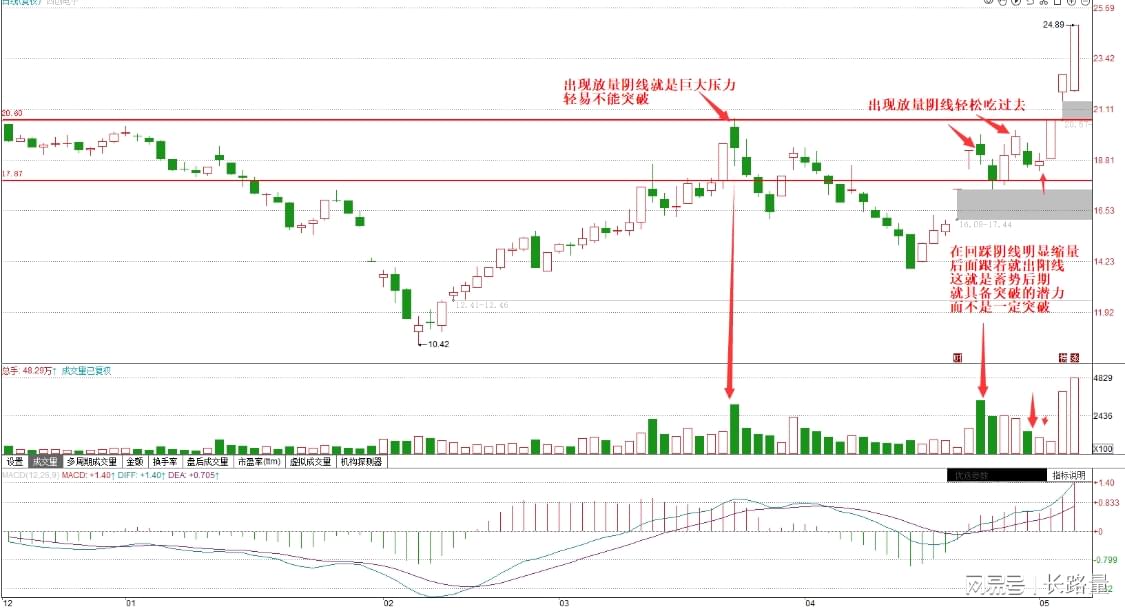 只是回调下跌的深浅区别而已,所以一旦出现放量阴线之后,回调的深度比较深,那么这根放量阴线的位置就是后期上涨的压力位。