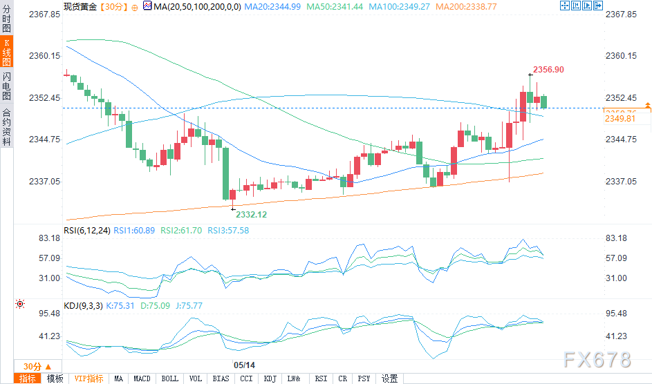 鲍威尔讲话过程中,现货黄金短线一度下挫失守2350,此前触及日高2357.10,随后又有所反弹,截至发稿,现报2350.89美元/盎司。
