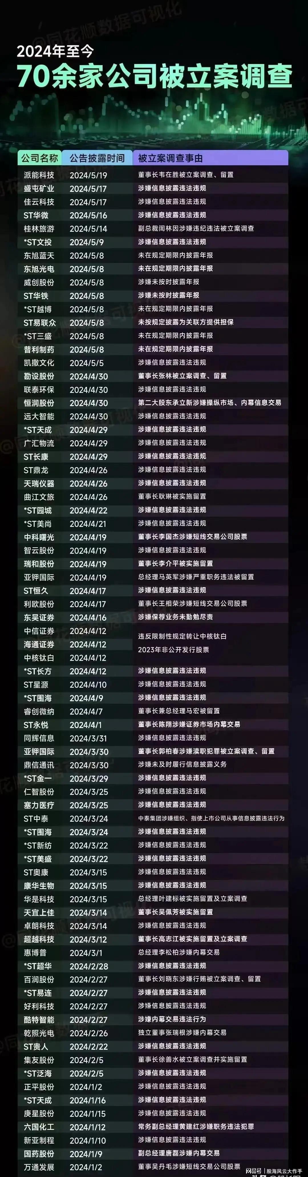 现在很多国企还被ST,像、汇金股份、海峡创新等。村里严格处理违法乱纪的上市公司是好事,有利于证券市场长远发展。但是让众多股民来买单就有些不妥啊。我们股民还是得自己保护自己,做好这类风险的回避才是最重要的。这里有被立案调查可能被ST名单和审计异常可能被ST的名单,大家尽早远离。